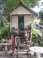 Doi Chom Thong has undoubtedly been a sacred site for a very long time. The site was surely revered as the home of local spirits before Buddhism arrived in the area. As in many Thai wats, Spirit Houses coexist happily with the newer Buddhist shrines. Elephants are part of the lore of Doi Chom Thong. Paw Kuhn Mangrai was said to have been following an elephant that had wandered off when he first came upon Doi Chom Thong, a solitary hill on the banks of the River Kok.
