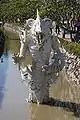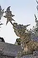 Gate of Heaven: After crossing the bridge, the visitor arrives at the "gate of heaven", guarded by two creatures representing Death and Rahu, who decides the fate of the dead. In front of the ubosot are several meditative Buddha images.[3]
