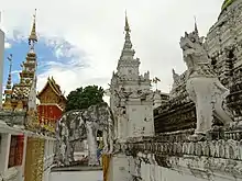 Wat Saen Fang (Thai: วัดแสนฝาง) is a Buddhist temple in Chiang Mai, Thailand. The temple was founded in the 1500s, but all extant structures date to the 1800s or later.[1] The viharn of Wat Saen Fang previously served as the royal residence (ho kham) of Kawirolot in the 1860s, and was converted into a viharn by his successor, Inthawichayanon in 1878.[1] The temple is also noted for its Burmese-style chedi, which is gilded with glass mosaic.[1] The ubosot, which is topped with kinnara, is a fusion of Burmese and Lan Na styles.[1]