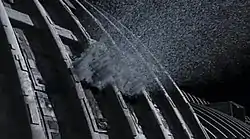 One of Galactica's water tanks spews water