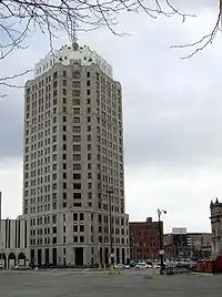 The Water Board Building is a high-rise office building located at 735 Randolph Street in downtown Detroit, Michigan. It was constructed in 1928 and stands at 23 stories tall. It was designed by Louis Kamper in the Art Deco architectural style, and its materials include granite, limestone, marble, and terra cotta.
