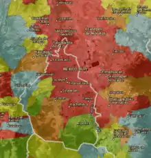 To prevent urbanization, a total of 182 Federally Protected Natural Areas (NPA) have been declared throughout the country and cover 90,893,522 hectares.[23] Additionally, state protected areas exists: Mexico City has a total of 23 NPAs, covering a total of 26,047 hectares.[24] The State of Mexico has a total of 88 NPAs, covering a total of 983,984 hectares.[25] Despite this, the Mexico City Metropolitan Area (MCMA) has grown physically and demographically since the 1930s. It spreads over a surface of 4,250 km2 and has a metropolitan population of approximately 21.2 million, concentrating 18% of the country's population.[20] It covers over 16 boroughs of Mexico City and 34 municipalities of State of Mexico.