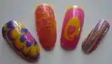 Water marble nails are a finger nail art technique involving dropping nail lacquers into clear water and creating a pattern on the water surface; the pattern is then transferred to the nails.