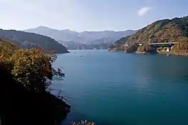 In 1961, a Water Resources Development Promotion Law was passed. On its basis over the next decade seven river basins with high growth in water needs were designated for water resources development and investments in dams, weirs and inter-basin transfers was undertaken on the basis of comprehensive development plans for each basin.[18] During the 1970s and 80s numerous dams were thus built to provide storage to avoid future water scarcity and to supply the growing cities with sufficient water. However, the construction of some dams was substantially delayed. For example, construction of the dam forming what is today Lake Miyagase was begun in 1971, but for a number of reasons including the need to resettle 300 households, the dam was only completed in 2000.[19] Beginning in the 1960s investment in waste water treatment was initiated. In 1993 the Environmental Law was passed and subsequently legislation was passed to protect the headwaters of rivers, thus gradually shifting from a curative approach to a preventative approach of water quality management.[20]