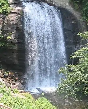 - Upper Whitewater Falls, part of Whitewater Falls which extends into South Carolina, which together drop over 1000' in elevation before hitting the plunge basin.