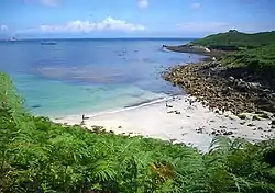 Watermill Cove is on the north–east coast of St Mary's, Isles of Scilly.