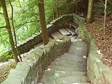 Watkins Glen State Park is in the village of Watkins Glen, south of Seneca Lake in Schuyler County in New York's Finger Lakes region. The park's lower part is near the village, while the upper part is open woodland. It was opened to the public in 1863 and was privately run as a tourist resort until 1906, when it was purchased by New York State.[1][2] Initially known as Watkins Glen State Reservation, the park was first managed by the American Scenic and Historic Preservation Society before being turned over to full state control in 1911.[1] Since 1924, it has been managed by the Finger Lakes Region of the New York State Office of Parks, Recreation and Historic Preservation.[3]