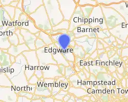 The Watling Estate is in Burnt Oak, in the Edgware district of the London Borough of Barnet. It was one of twelve London County Council cottage estates built between the wars to provide "homes fit for heroes". There are 4032 homes set in 386 acres (156 ha).[1]