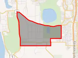 Wattleup is a southern suburb of Perth, Western Australia, located within the City of Cockburn. In the mid 1990's to the early 2000's, planning was undertaken to redevelop the suburb as part of the Hope Valley-Wattleup Redevelopment Project, also known as "Latitude 32".[3][4] This was to involve the acquisition and demolition of the townsite, and its rezoning and redevelopment for industrial use.[5] The townsite of Wattleup was located at the western end of the suburb, at the intersection of Wattleup Road and Rockingham Road.[6] Wattleup had many market gardens in the past. They provided agricultural produce for the town of Fremantle.[7]