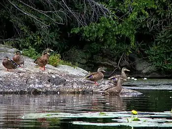 The park is part of the Northeastern coastal forests ecoregion.[2] It is home to the red-shouldered hawk, the barred owl and the great blue heron, and includes 1,300-foot (396 m) Wawayanda Mountain and glacially-formed, spring-fed Wawayanda Lake with a swimming beach and boat launch and group camping.