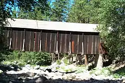 The Wawona Covered Bridge is a covered bridge spanning the South Fork of the Merced River near Wawona, California in Yosemite National Park. The open bridge (without the covering) was built by Galen Clark, the steward of what was then called the Yosemite Grant, in 1868, without its cladding. The open bridge was a component of Clark's proposed new road from Wawona to the Yosemite Valley. Clark was unable to complete the road, which he sold to the Washburn Group of investors along with his stopover lodging (Clark's Station) in 1874. In mid-1875 the Washburn Group completed the road to Yosemite Valley. It is one of twelve remaining covered bridges in California.[2]