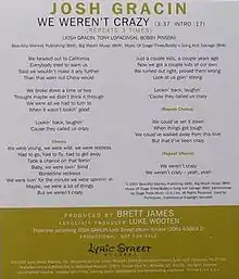 - Malec, Jim (October 9, 2007). "Josh Gracin - "We Weren't Crazy"". The 9513. Archived from the original on October 28, 2007. Retrieved July 30, 2008.