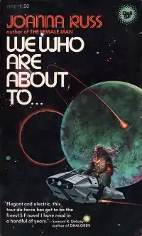 We Who Are About To... is a feminist science fiction novel by Joanna Russ. It first appeared in magazine form in the January 1976 and February 1976 issues of Galaxy Science Fiction and was first published in book form by Dell Publishing in July 1977.
