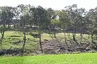 Some devastating flood damage occurred in the upper reaches of Mulla Creek and around Weabonga when the area was flooded on 28 November 2008, just hours after these photos were taken. The Limbri to Weabonga Road is still cut at the Limbri end and two bridges have been bypassed owing to damage. The Sherrin Bridge on this road was very badly damaged.[5]