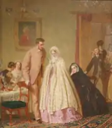 The Oxford English Dictionary does not record any occurrences of the phrase "wedding breakfast" before 1850, but it was used at least as far back as 1838.[2] This would agree with the quotation above, which suggests the phrase came into use about the 1830s.
