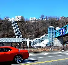The district along the Hudson Waterfront has expanded to become a commercial, residential, and recreational neighborhood.[29] In June 2011, ground was broken on 850-space garage and retail space building, across from the ferry terminal.[30][31] In October 2011, the hub was announced as the site of the Port Imperial Street Circuit, a motorsport venue hosting the Grand Prix of America, a round of the Formula One World Championship.[32] The start-finish line and pit facilities for the event were supposed to be directly opposite the ferry terminal, and the area was to be further redeveloped for the race, however the event never materialized.[33] In June 2013, a long-awaited bridge connecting the ferry terminal and light rail station was opened.[34][35]