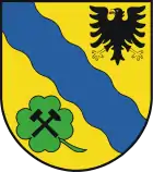The main feature in the coat of arms is the blue band representing the river Saale. The Prussian eagle in the top-right was added as the area became part of Prussia in 1816, even though it historically belonged to Saxony. The cloverleaf with the mining symbols inside was taken from the coat of arms of the former district Hohenmölsen. The trefoil represented the agriculture in that district, the mining hammers the lignite mining. |