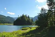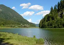 Weitsee is a small lake on between Reit im Winkl and Ruhpolding with an area of 63.60 ha and a maximum depth of 9.30 m. The lake itself is separated into a shallow western and a deeper eastern part by a mountain peninsula. It is the first lake in the Dreiseengebiet (Three Lake Area) followed by the Mittersee and Lödensee. The lakes are located in the valley between the Gurnwandkopf und Dürrnbachhorn next to the Deutsche Alpenstraße B305 (German Alpine Street).