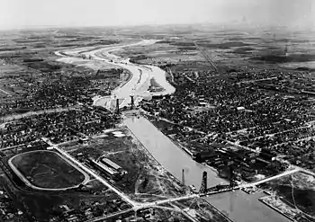 While the previous three canals were each at slightly different locations, the width of the greatly expanded fourth canal encompassed all of them.[1] Fourth canal construction started as early as 1913. There were delays as a result of World War I, and this massive project was not completed until 1932.[1]
