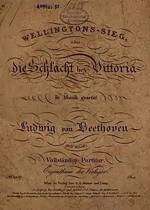 Wellington's Victory, or the Battle of Vitoria (also called the Battle Symphony; in German: Wellingtons Sieg oder die Schlacht bei Vittoria), Op. 91,[1] is a minor 15-minute-long orchestral work composed by Ludwig van Beethoven to commemorate the Marquess (later Duke) of Wellington's victory over Joseph Bonaparte at the Battle of Vitoria in Spain on 21 June 1813. It is known sometimes as "The Battle Symphony" or "The Battle of Vitoria", and was dedicated to the Prince Regent, later King George IV. Composition stretched from August to first week of October 1813, and the piece proved to be a substantial moneymaker for Beethoven.