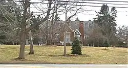 Wellington House, also known as Charles Estabrook Mansion, is a historic home located at Fayetteville, Onondaga County, New York. It was designed by Ward Wellington Ward built in 1922–1923. The main house is a two-story, brick, stone, and half-timber Tudor Revival style mansion topped by a prominent slate roof. It features a Tudor-arched front porch and stone portal. In addition to the main house, the property includes the contributing gardener's residence; combined garage, stables, and greenhouse building; formal garden; brick gateway; two small utility buildings; and the original curving drive.[2]: 5
