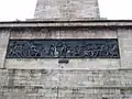 There are four bronze plaques cast from cannons captured at Waterloo – three of which have pictorial representations of his career while the fourth has an inscription.[1] The plaques depict 'Civil and Religious Liberty' by John Hogan, 'Waterloo' by Thomas Farrell and the 'Indian Wars' by Joseph Robinson Kirk. The inscription reads:
