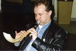 Contemporary pipe makers in Wales base their chanters on measurements of extant historical examples of the pibgorn. Some of these instruments, dating from the eighteenth century, are on display at the Museum of Welsh Life. The single-reed type pipe with a drone attached via the bag is called the pibau cyrn. A notable player of these pipes is Ceri Rhys Matthews. Makers include John Glennydd from Carmarthenshire and John Tose from Pembrokeshire.[7]