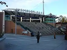 The Stadium was too large to conceal, and German aircraft used it to identify their location. They also dropped bombs on Wembley Park. At least two fell on the former British Empire Exhibition site, one fell very near Wembley Park station, and several fell on the suburban housing to the west of Empire Way. Light industry in Wembley Park helped the war effort, but the low concentration of bombs here compared to Tokyngton just south of it, suggests that it was not seriously targeted by the Luftwaffe.[65] In 1944, a V1 flying bomb fell onto the greyhound kennels. Two dogs were casualties and about 60 escaped onto the streets of Wembley.[66] An unexploded 50 kg bomb was uncovered during redevelopment work in May 2015.[67]