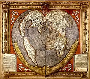 Woodcut from 1536 by Oronce Finé showing the Werner projection