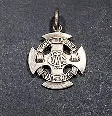 The "One Heart, One Way" motto of the Guild was suggested by the heraldic motto of Earl of Exeter - Cor unum, via una. A cross-like emblem that was placed at the entrance of the Castle of the Earl of Exeter in Britain had this inscription as taken from the Bible Book of Jeremiah 32:38 and was used as a guiding principle for the knights of the Earl. The emblem was adopted for the use of the Wesley Guild in 1898 and formally used in 1903 when the Wesley Guild charter first introduced.