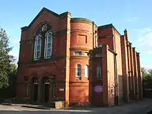 The Wesleyan Methodist Church, also known as the Wesleyan Chapel, is a former Wesleyan Methodist church on Hospital Street, Nantwich, Cheshire, England (at SJ6531052249). Built in 1808, a new façade was added in 1876. The church then seated over a thousand, and was the largest Nonconformist place of worship in the town in the 1880s. It is listed at grade II.[1] The church closed in 2009, after the congregation moved to the former Methodist schoolrooms opposite.