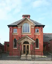An elementary day school was constructed in 1840 on Hospital Street, opposite the church, which also doubled as the Sunday school; by 1873 it was teaching both boys and girls to read.[5] On 3 January 1908, the school burned down and was replaced with the existing building, which opened on 27 September 1909 at a cost of £2,000, raised by the local circuit.[5][7] The new building was used as a Sunday school rather than a day school.[8]