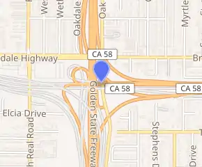 The West Bakersfield Interchange is a freeway interchange in Bakersfield, California, west of downtown. It connects State Route 99 (Golden State Freeway) with SR 58 (Mojave Freeway). These routes represent the heart of the Bakersfield freeway network. They connect the city with commercial centers in the San Joaquin Valley, ports in Los Angeles, and major Interstate freeways serving southern and eastern America.