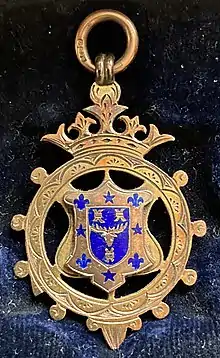 ![]() West Bromwich Charity Cup medal (obverse), awarded to Edmund Wood in the 1901-02 season. The decoration is based on the coat of arms of West Bromwich | |
