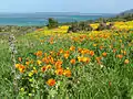 Although the thousands of migrating birds are an important part of the conservation, the flowers are also a major attraction. The park is composed of various kinds of habitats — as well as the Langebaan fynbos and lagoon — which account for the variety of flora and fauna all around the park. The months of August and September bring about the proliferation of annual Spring flowers in the West Coast National Park.[7] During the spring flower season large fields of blooming White rain daisies (Dimorphotheca pluvialis), Gousblom (Arctotis hirsuta), Magriet (Ursinia anthemoides), Livingstone daisies (Dorotheanthus bellidiformis), and Wild sorrel (Oxalis pes-caprae) can be seen along with other species of flowing plants.