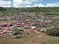 The area of Postberg, where the carpets of Spring flowers can be seen, is only open during the months of August and September. The most common flower species are Suurvy (Carpobrotus edulis), Elandsvy (Carpobrotus acinaciformis), Gousblom (Arctotis hirsuta), Bokbaai vygie (Dorotheanthus bellidiformis), White rain daisy (Dimorphotheca pluvialis), Sporrie (Heliophila coronopifolia), Magriet (Ursinia anthemoides), and Soetuintjie (Moraea fugax).[7]