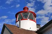 During the early 1800s Bass River was an important safe harbor for schooners and fishing ships in Nantucket Sound. At that time, a small light was placed in the upper window of a private home to help mariners in the area.[4] In 1850, the federal government of the United States appropriated $4000 to build a lighthouse near the breakwater at the mouth of Bass River. In 1854, construction began on the light and keepers home. As was typical of early Cape Cod style lighthouses, the light tower was an integral part of the keepers house, centered atop the dwelling's roof.[1][5] Because most of these structures leaked significantly, they were replace with self-standing towers; the West Dennis Light is the only remaining lighthouse on Cape Cod built with this design. The light was lit in 1855, and continued in service until 1880, when the Lighthouse Service decided the Bass River Light was no longer necessary since a new light had been built at Stage Harbor in Chatham. After many complaints, the light was relit a year later.[1]