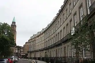 Additional Victorian crescents and terraces were built around this northern section of the West End as the Walker family sold off the land to the west of Easter Coates House in the 1860's, usually with a private garden as their central focal point in much the same way as the New Town Gardens. These included the 1860's Rothesay Terrace by Peddie and Kinnear, and the 1870's Eglinton, Glencairn, Grosvenor and Lansdowne Crescents by John Chesser.[38]