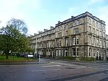 The northern part of the West End of New Town sits on the Water of Leith river and forms part of Edinburgh's UNESCO World Heritage Site.[5] The West End of New Town is contiguous with the rest of New Town and is accordingly included in the New Town Conservation Area.[6] As can be inferred therefore, this area of the city contains many buildings of great architectural beauty, primarily long rows and crescents of Georgian terraced houses.[7] The West End of New Town also incorporates many of the New Town Gardens, a heritage designation since 2001.[8]