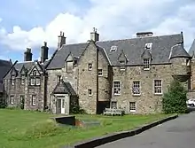In 1615 John Byres the city Treasurer built Easter Coates House to the west of the city. The house had a truly huge estate, stretching to St Cuthbert's Church.[11] The house was originally a Laird's house, and as the city of Edinburgh grew, and John Byres became city Treasurer and Bailie, it became an early example of a Burgher's city mansion. The house is still standing as of the 21st Century as the center of the West End district.[12]