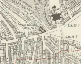 ![]() West Green station on a 1920 map | |