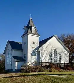 West Grove United Methodist Church is located in the Unincorporated community of West Grove, Iowa, United States. West Grove has always been a Crossroads village, serving the surrounding rural area.[2] At one time it had five churches, and now it has been reduced to this one. The site was originally that of Cumberland Presbyterian Church, which had been organized in 1854 and built in 1881. It eventually became a Lyceum Hall, a school, and then left unoccupied until it was torn down in 1902.