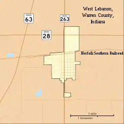 West Lebanon is a town in Pike Township, Warren County, in the U.S. state of Indiana.[4] The population was 723 at the 2010 census.[5]