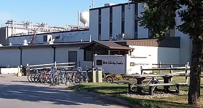 Louis H. Rich purchased the West Liberty plant, a former tomato canning facility, in 1943, when he decided to expand the operations of the Rock Island Produce Company, located on 9th Street in Rock Island, Illinois.[1] The plant was converted to a poultry, including chickens and turkeys, slaughter facility in 1946 and refocused by Rich's sons, Norman and Martin, on turkey in 1949.[2] The plant was first expanded in 1960. Oscar Mayer acquired the plant, through its purchase of Louis Rich, Inc., in 1979 and used it for turkey production until selling the plant in 1996.[2]