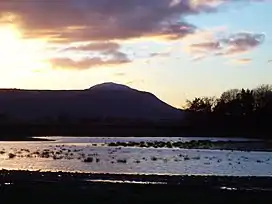 West Lomond is the highest point in the county of Fife, Scotland and the highest peak in the Lomond Hills. Its cone-shaped summit, which is the remains of a volcanic plug, rises above an escarpment of Carboniferous sandstone and limestone layers, capped with a quartz-microgabbro sill.[1] The conspicuous peaks of West Lomond, and its neighbour East Lomond, are visible for many miles around, which explains one suggested origin of their name, the 'Lomond' or 'beacon' hills. On the summit are the remains of an Iron Age hill fort.