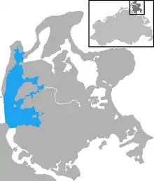 The West Rügen Bodden (German: Westrügener Bodden or Rügenschen Außenboddenkette) are a string of lagoons and embayments, known as bodden, in Western Pomerania on the Baltic Sea coast. They lie in the Western Pomerania Lagoon Area National Park west and southwest of the island of Rügen, and east and southeast of Hiddensee.