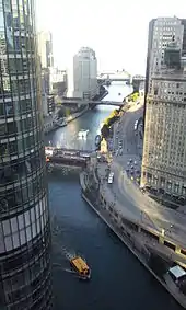Chicago's homicides reached peak numbers in the early 1990s in Humboldt Park, Austin, Lawndale, and Garfield Park.[53] As numbers began to go down throughout the 1990s, another round of displacement began to take hold. Major gentrification efforts in the Near West Side and West Town began, where corporate investors supported the addition of high-end businesses and luxury-style residential condos.[54] Property taxes rose thus raising rents, forcing poorer Puerto Rican and Black residents to move yet again.[55]