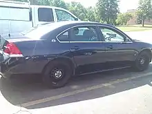 State Police vehicles are composed of a variety of makes with blue and gold colors accompanied by the agency's logo on the side front doors.[8] For many years, the agency has used Ford Crown Victorias for the road. In recent years however, State Police has phased in Chevy Impalas and the new Ford Police Interceptor and Police Interceptor Utility into its fleet. The agency also uses unmarked vehicles that are usually assigned to command staff members. Vehicles are mainly equipped with blue LED lights.