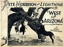 West of Arizona is a 1925 American silent Western film directed by Tom Gibson and starring Pete Morrison, Betty Goodwin and Beth Darlington.[1]