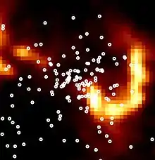 Observations by the space-based Chandra X-ray Observatory have shown a diffuse X-ray glow from the H II region, which is likely due to the presence of a multi-million Kelvin plasma.[2][30] Such hot plasmas can be produced by winds from massive stars, which become shock heated.